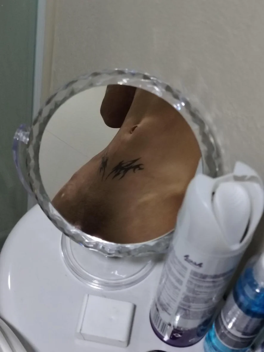 Do you like my tattoo? You'll like what's underneath it better. my cock.